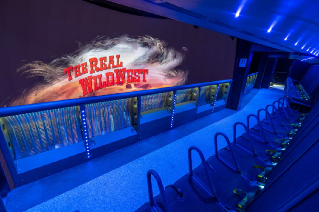 The adventure begins with two captivating preshow areas that prepare guests for the aerial journey ahead. In the first room, visitors are introduced to the places they will fly over, with animated scenes inspired by classic Western movies. The second preshow room immerses guests in the geological history of the region, showcasing ancient seas and the cultural history of the American West through stunning 360-degree visuals.