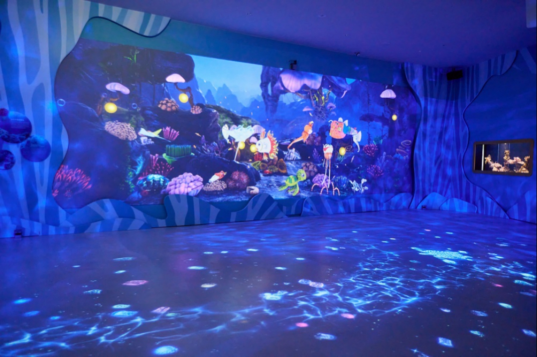 子どもたちが海に対する想像を鮮やかな絵に変えて投影し、交流できるインタラクティブウォール。